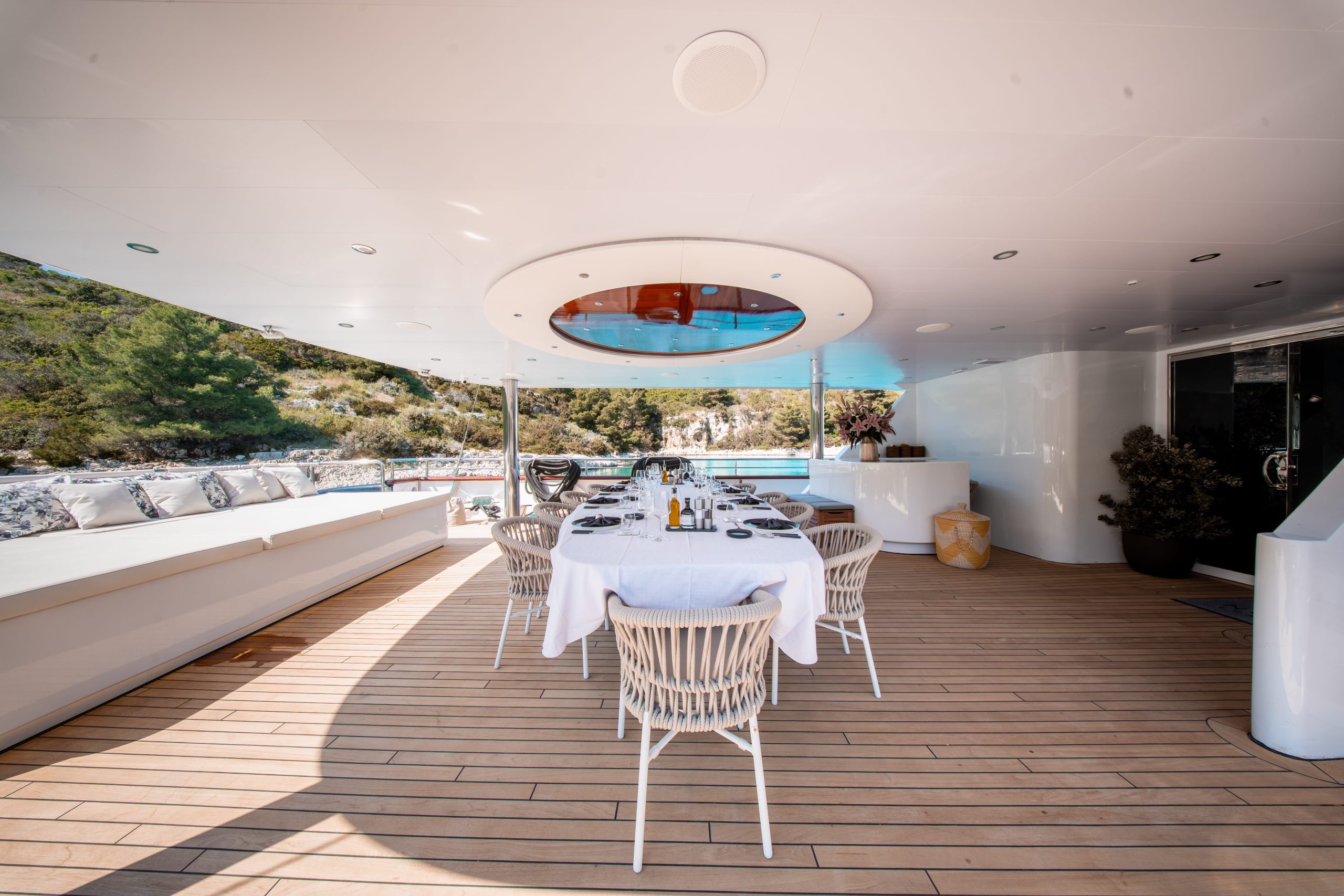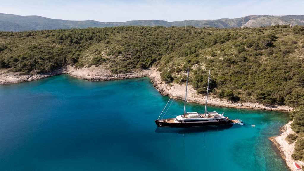 Duje Ercegović, owner and captain of Nocturno, carries on his family’s nautical tradition with calm confidence and love for the sea. For the past three years he has led the crew, which he calls his second home. His calm and personal approach is felt by everyone on board. The crew works seamlessly together, making every moment smooth and effortless. Every detail is cared for, creating an experience that is both professional and welcoming.