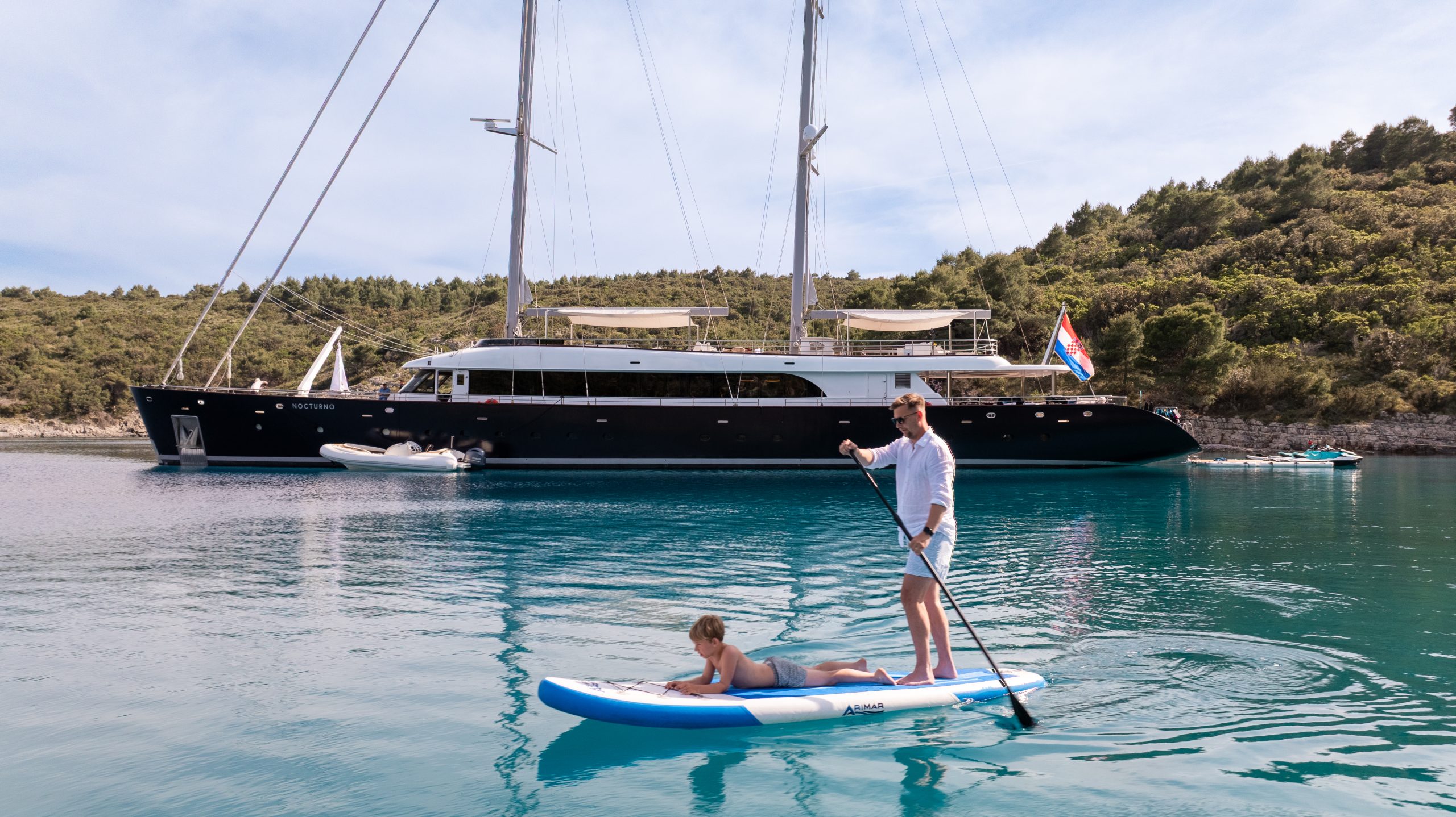 Luxury on Nocturno feels simple. Everything flows with a gentle rhythm, from open spaces to every detail designed for comfort. The yacht is calm, elegant and intimate, where cuisine delights and service feels like home. At the helm is Duje Ercegović, owner and captain. He brings his family’s nautical tradition with calm confidence, professionalism and warmth. Each detail is cared for, and life on board feels smooth, easy and relaxed. Professional, dedicated and authentic, his vision shapes every journey on Nocturno.